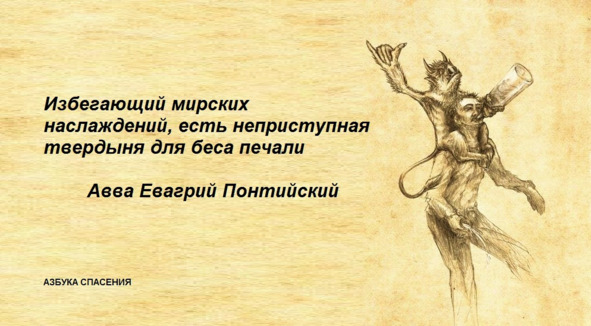 Избегающий мирских наслаждений есть неприступная твердыня для беса печали. Ибо печаль есть лишение наслаждения, настоящего или ожидаемого. Поэтому мы не сможем отразить этого врага, если имеем пристрастие к чему-либо земному. Ведь он ставит свои западни и вызывает в нас печаль там, где видит нас наиболее склонными к чему-либо.