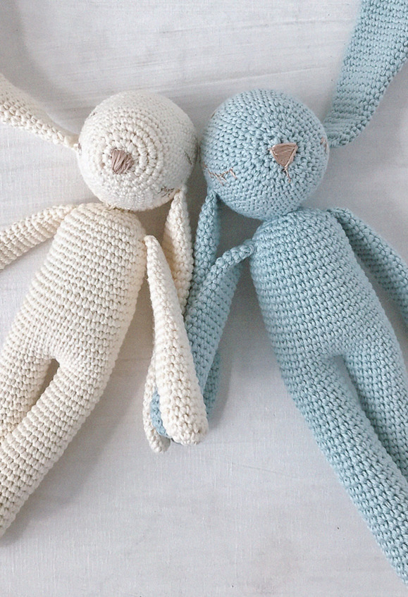Кролики на фото связаны из хлопковой пряжи Drops Safran (50 гр, 160 метров).