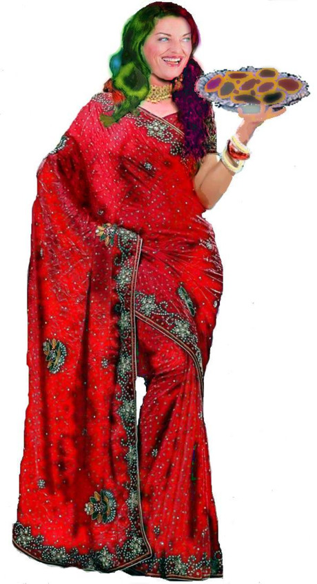 К нам подошла женщина в странных блестящих тряпках, напоминающих сари: