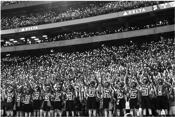 Командный дух выходит за рамки ношения школьной куртки, поскольку эти студенты Университета Джорджии носят буквы своей школы по-другому и подбадривают свою команду на пути к победе.