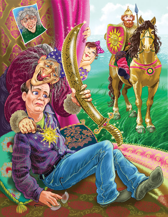 – Долго рассказывать! На месте увидишь. Вот тебе, племяш, волшебная сабля, коли палица для тебя тяжела. Держись за нее крепче и не отпускай, а остальное она сама за тебя сделает!