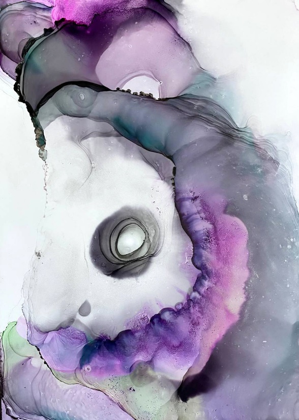 Основным материалом для рисования является спирт и чернила. Ей нравится экспериментировать в творчестве. Рисовать разными материалами на разных поверхностях. Например, сочетать чернила с воском, маркерами, смолой или текстурной пастой. Такие миксы техник и материалов помогают автору добиться эффекта, который четче выразит свой посыл.