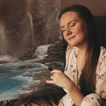 «Я давно задумывалась о своем предназначении, очень хотелось найти такое занятие, которое будет приносить огромное удовольствие. Так в мае 2022 года случайно попала на курс текстурной живописи и влюбилась в эту технику», – вспоминает мастер. В начале творческого пути самым интересным моментом для нее стало понимание того, что через свое творчество она исцеляет себя и других людей. У нее сформировался свой уникальный метод создания картин.