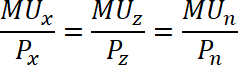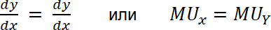 где MUx означает степень полезности предмета потребления X в использовании x, и одинаковым образом для у