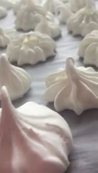 Взбить белки комнатной температуры постепенно увеличивая скорость миксера