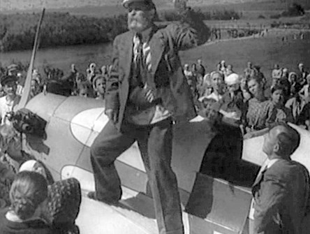 Главный герой картины Степан Лаутин170 возвращается в родную деревню с благородной миссией вывести здешнее образование на качественно иной уровень: построить десятилетку. Его отец, председатель колхоза и старый партизан Иван Лаутин171 поначалу встречает сына с радостью, но очень быстро меняет милость на гнев – выяснив реальные обстоятельства приезда. Тот факт, что Степан Лаутин, получивший образование и живущий в Москве, возвращается на постоянное место жительства в свою деревню, воспринимается отцом как полная жизненная неудача не только для сына, но и для себя самого, поскольку полностью лишает его символических ресурсов в заочном «конкурсе детей» с другими деревенскими стариками – и это при том, что один из тех пацанов, который когда-то дружил со Степаном и «горох по огородам воровал», выбился в комбриги авиации, «имеет ромбу, в воздухе почет, и на земле ему почет». А после того как выясняется, что работать Степан собирается учителем, катастрофа приобретает масштабы апокалипсиса, живо всколыхнув весь тот набор стереотипов, которые еще с дореволюционных времен бытовали в русской крестьянской среде по отношению к сельским учителям как к людям ничтожным, нищим и мало смыслящим в деревенских делах. Однако дружеская (и партийная) поддержка со стороны секретаря райкома позволяет герою изменить отношение со стороны отца, построить новую школу и стать ее директором. В финале картины тот самый комбриг лично прилетает на самолете без опознавательных знаков, чтобы привезти известие о том, что его дивизия выдвинула Степана Лаутина кандидатом в депутаты Верховного Совета, – что, учитывая реалии советских выборов, уже означало фактическое вступление в должность. Старик-отец вдруг оказывается обладателем козырного туза и, стоя на крыле самолета, произносит пламенную речь во славу советской власти. Все счастливы.