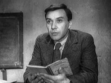 Повышение престижа учителя в кинокартине Герасимова достигается и за счет других, непрямых средств. Начнем с того, что учитель здесь – мужчина: ситуация, во-первых, весьма необычная для советского кино о деревенских учителях178, а во-вторых, серьезно поднимающая сельское учительство по советской шкале сравнительной значимости профессий с ее выраженными гендерными акцентами. Роль играет и та простота, с которой герой общается с представителями высших сил, начиная от секретаря райкома и заканчивая теми горними сферами, из которых к нему прилетает волшебный вестник. Сигнал в данном случае недвусмыслен: персонаж Бориса Чиркова является неотъемлемой частью современных советских элит. Этот режим постоянного пребывания на прямой связи с высшими силами имеет еще одну семантическую составляющую. Власть в сталинском кино, причем не только на школьную тему, но и на любую другую, подается как воплощение Истории, и главная задача этой власти – способствовать тому, чтобы рядовой человек осознал неотменимые и всесильные законы исторического развития и осознанно же встроился в процесс. В разных картинах на школьную тему эта связь будет осуществляться разными средствами, но присутствовать она будет непременно. Одной из самых информативных в этом смысле сцен является вечер вопросов и ответов в сельском клубе, где протагонист принимает на себя роль источника истинной информации по любым областям человеческого знания – «от аэродинамики до космогонии». Роль эта двойственна: с одной стороны, для односельчан он является фигурой, по определению, причастной высшему знанию. Они приходят на этот вечер не без намерения выяснить, насколько конкретный человек по имени Степан Лаутин с ней справится, но в самом его праве выступать в подобной роли никто из них не сомневается – за исключением отца, который находится по отношению к герою в достаточно специфической и по-своему безвыходной позиции. Если сын провалится в этом интеллектуальном quiz show, это будет означать дополнительный удар по отцовскому самолюбию, и без того уязвленному; если же у него все получится, самый факт появления в деревне и в собственном доме фигуры более компетентной, чем отец и председатель колхоза, является приобретением весьма сомнительным. Как всегда в подобных случаях, Партия выступает в роли deus ex machina, разрешителя всех конфликтов: заехавший по случаю секретарь райкома едва ли не силком препровождает старого партизана слушать сына. С другой стороны, персонаж Бориса Чиркова по окончании вечера остро переживает недостаточность собственной компетенции – которую показательнейшим образом обсуждает не с кем-нибудь, а с секретарем райкома. Как и было сказано в предыдущей главе, роль рядового посланца высших сил в сталинском кинематографе двойственна: будучи авторитетным пастырем для «народа», в отношении к самим высшим силам (к Вождю и/или Партии) он, по определению, не вправе претендовать на полноту компетенции. Судя по всему, выбор Бориса Чиркова на главную роль в «Учителе» был отнюдь не случайным. После «Трилогии о Максиме» (1934–1938) Козинцева и Трауберга, к концу которой персонаж Чиркова дорастал до представительного символа Партии, и после первой серии «Великого гражданина» (1937), где артист играл уже совершенно аллегорического «товарища Максима», советский зритель в 19