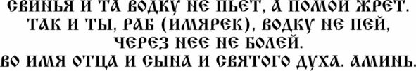 Этот заговор следует произносить тайно над алкогольными напитками, которые употребляет страдающий алкоголизмом человек, не позволяя ему узнать об этом. Необходимо прочитать заговор три раза и проследить, чтобы он выпил эти «наговоренные» напитки.