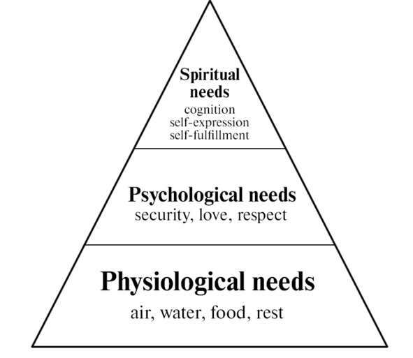 A need is a state of a living being, expressing a dependence on what constitutes the conditions of its existence. A. Maslow in his pyramid described these needs. They can be divided into three varieties: physiological needs, psychological needs, spiritual needs.