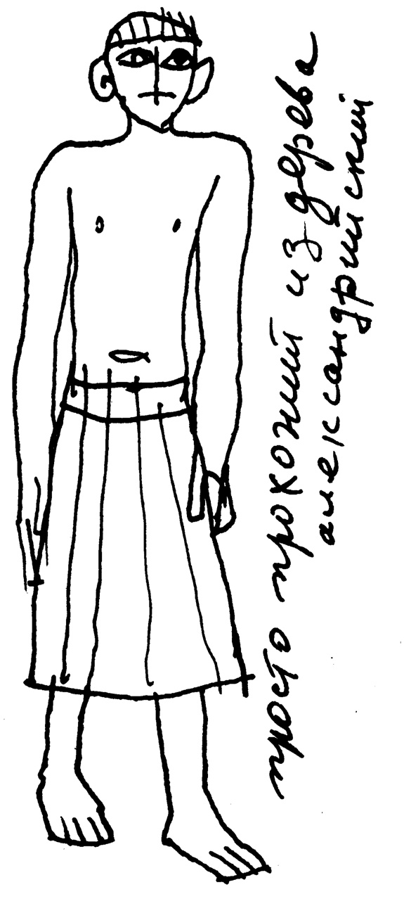 Скульптурка была темного дерева, точеная, привлекала чистотой формы, точностью силуэта, гладкостью поверхности. Сантиметров двадцать, не больше. Махонькая. С прямыми плечиками. Ручки висят. Кулачки сжаты. Женская фигурка.