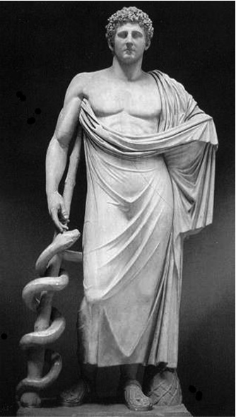 В сонме мифологических образов особое место занимает фигура Эскулапа (лат. Aesculapius, греч. Ασκληπιός). Культ Асклепия как бога-целителя сложился в Элладе к VII в. до н. э. По всей вероятности, прообразом этого мифологического героя был реально существовавший легендарный врачеватель времен Троянской войны (XII в. до н. э.) – царь Фессалии и глава семейной врачебной школы – Асклепий. Первое упоминание о нем и его сыновьях Махаоне и Подалирии.