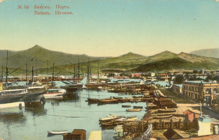 «Город расположен в болотистой, нездоровой, но чрезвычайно плодородной местности. Он окружён лесами, полями кукурузы и виноградниками. Там и сям вершины гор выжжены, и по их голым склонам бродят курды и пасут своих баранов. Над верхушками густых лесов высятся развалины старинных замков. Жизнь в Батуми отчасти носит латиноамериканский характер. В столовую гостиницы люди приходят, одеваясь в модные платья, в шёлковых туалетах и драгоценностях. Улицы в городе широкие, но не мощёные. Ездят и ходят по песку. В гавани кишмя кишат корабли. Небольшие парусные суда, которые приходят сюда с юга, даже из Турции. И большие европейские пароходы, совершающие рейсы из Батуми на Александрию и Марсель».