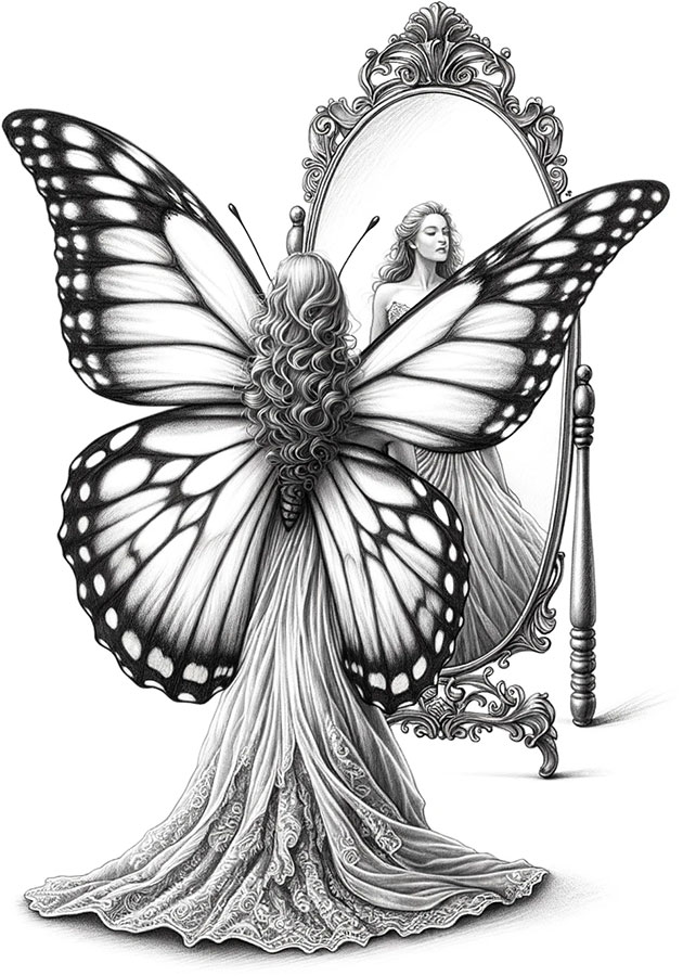 Гусеница обернулась, посмотрела в зеркало, а там… красивая яркая Бабочка, а не маленькая Гусеница и тем более не невзрачная моль. Обрадовалась, попробовала порхать с цветка на цветок – какая красота! Неужели это она? Неужели все сбылось, но как так, желание было ведь одно?