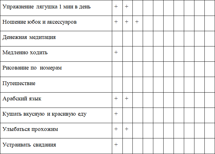 Для того, чтобы приблизиться к модели, которую вы описали выше, предлагаю составить трекер действий.