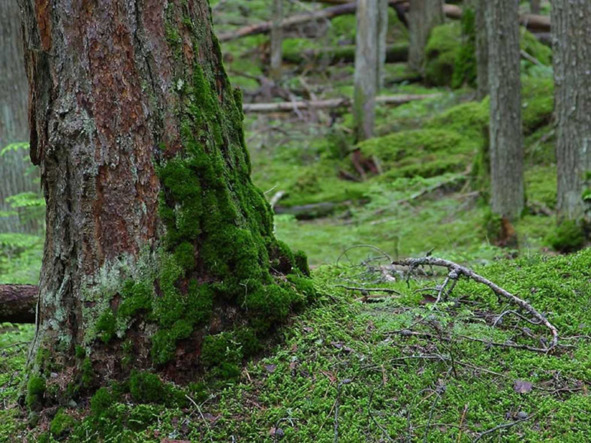 С северной стороны деревья имеют более грубую кору, покрытую лишайниками и мхом у подножия. На северной стороне кора березы и сосны темнее, чем на южной, а стволы деревьев, камни и выступы скал гуще покрыты мхом и лишайниками.