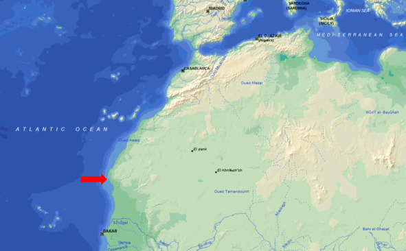 «После этого наш генерал подарил им льняную ткань, обувь и копье, которые они с радостью приняли, и отправились на берег. На следующее утро мы увидели их на берегу, и наш генерал послал нашу лодку. Один из наших людей опрометчиво выскочил на берег и дружелюбно предложил их обнять, они яростно набросились на него, приставив кинжал к его горлу, и так, положив его на лошадь, увезли его. Так что среди таких африканских негодяев человек должен быть очень осмотрительным и настороженным. Когда наша лодка была закончена, мы отправились из этого места в последний, 30-й день декабря, и, плывя вдоль берега, мы заметили несколько парусников, которые были испанскими рыбаками; за которыми мы погнались и взяли троих из них. Идя дальше, мы встретили три португальские каравеллы и взяли их тоже».