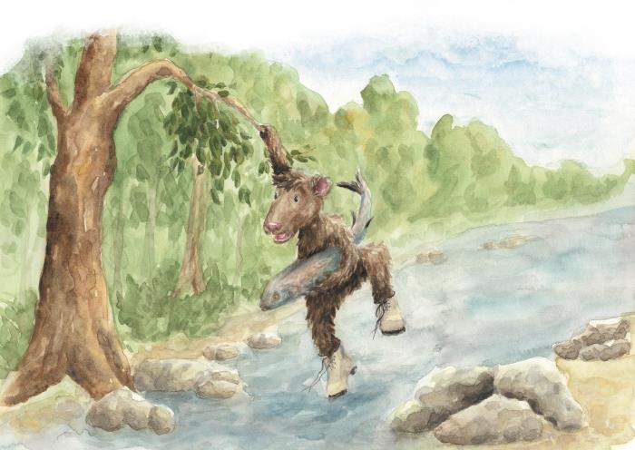 Когда подошли к реке, Мишка Карабабаду быстро залез в воду, но сразу понял: течение такое сильное, что ему хватает сноровки только удержаться на камнях. Как же он рыбу поймает?