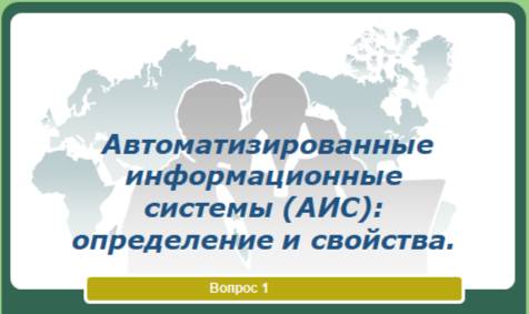 1. Автоматизированные информационные системы (АИС): определение и свойства(признаки системы).