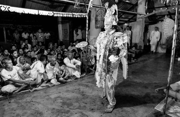 Традиции народной драмы в Индии продолжают процветать. Вишну появляется перед зрителями на выступлении в Маджули, Ассам