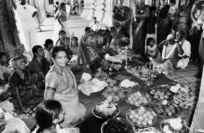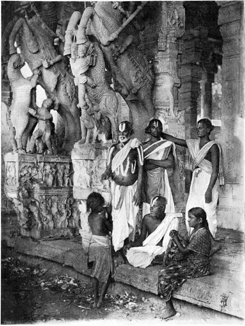 Вайшнавские брахманы вместе с девадаси (храмовыми танцовщицами) в храме Ранганатхи в Шрирангаме.