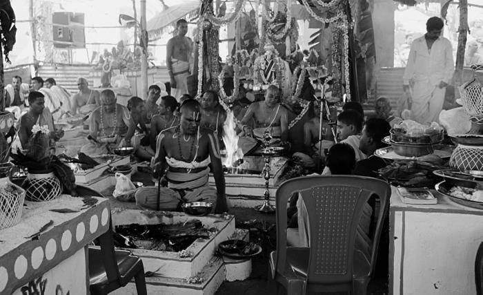 Яджня (огненное жертвоприношение) современных членов вайкханасы.