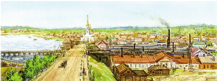 Как много в Воткинске небольших, похожих друг на друга домиков! Простенькие деревянные строения тесно прижимаются друг к другу огородами. Здесь живут рабочие. Дома выстроены ровными улицами, где беззаботно разгуливают только ребятишки. Все мужчины Воткинска заняты на заводе, а женщины хлопочут по хозяйству.