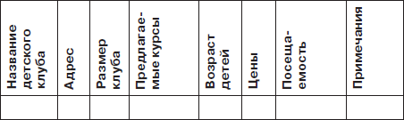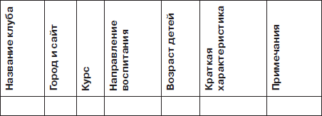 Все полученные сведения занесите в сводную таблицу: разрозненные листочки не помогут составить полную картину происходящего в детских клубах района или города (табл. 1.2).