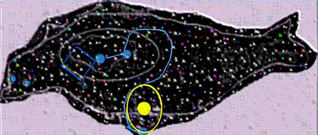 Составляя карты созвездий неба над Землёй и галактики, наши Предки как Носители Разума, расселяя себя по планетам, были вынуждены обозначать созвездия возникновения своего Разума той формой жизни, в которых этот Разум внедрился. Тип и вид живых существ, в которых вселился Разум, использовался для обозначения созвездий, на планетах которых образовался Разум. А иначе как, каким способом, через тысячи лет проживания переселённых людей на новой планете, объяснить, забывчивым народам, говорящих и пишущих на разных языках, уникальные события своего возникновения, в какой форме передать Знания? Способ оказался один и наиболее удачный – это назвать созвездия названием животных, в которых вселился Разум. Так появилось созвездие Большого Льва, Малой медведицы, созвездие Рыб, Ибиса, Шакала, Тельца и так далее. Только поэтому некоторая часть созвездий, видимых с Земли, имеют звериные названия и очертания. Эволюция приведёт животных к уровню развития человека. Вот доказательство: на этой зарисовке с фотографии космического пузыря российских астрономов явно видна голова животного в профиль:
