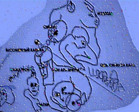 Сразу понятно, кто обитает в этом месте Вселенной, видна голова, похожая на земную белуху. На оригинале снимка видны головы собаки, лисы и змеи. По линии лба животного идёт надпись: «Зри сирии (серые) рили (рыла). Дити (дети) див (дивные) Тари (Тары). Трон Мары (богини смерти)». Животные – дети богини Тары, они необходимы и Земле для здоровья планеты. Животная энергия питает жизненность Земли.