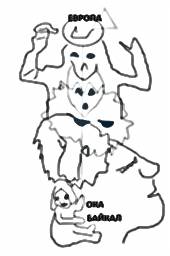 На реке Бусли Великобритании есть рельефное изображение этого процесса – нарисована рыба, в ней – орбиты планет. Каменная копия этого рисунка находится в Верхней Балкарии, камень назвали "Галактика". От морды медведя (ковша созвездия Малой Медведицы), от Полярной звезды, уходит астероид к Солнцу (местоположение будущей Земли):