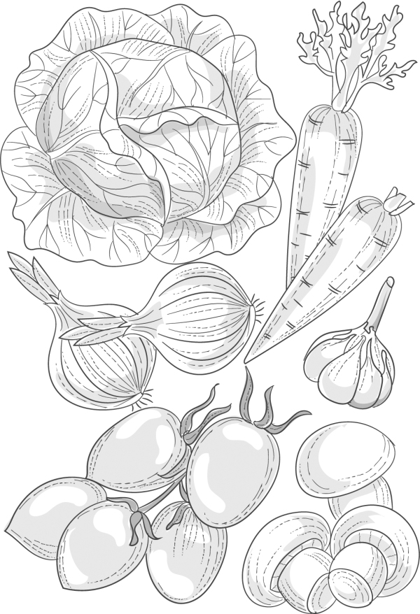 • Репчатый лук, морковь, свекла, томаты – примерно равное количество;