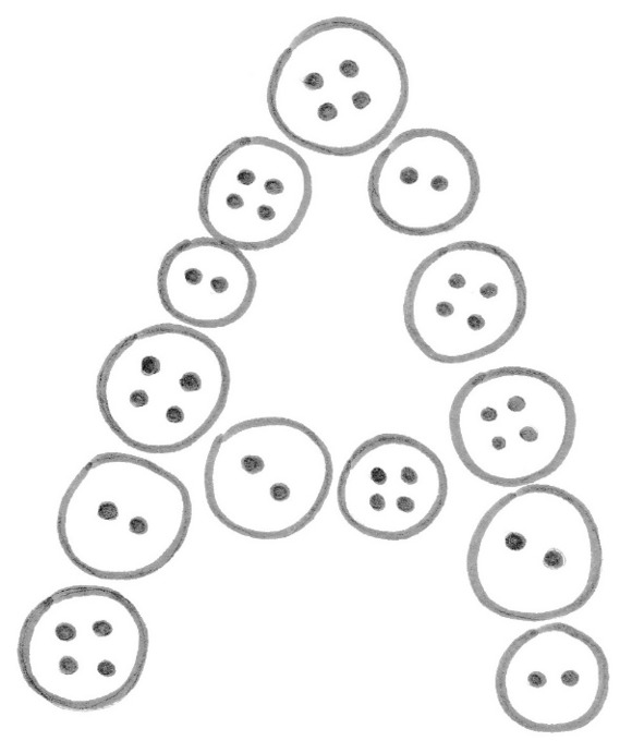 – буквы могут быть не только двумерными, продемонстрируйте это ребёнку, создавая их из подручных материалов: круп, солёного теста, пуговиц, счётных палочек и других подходящих для этого предметов;