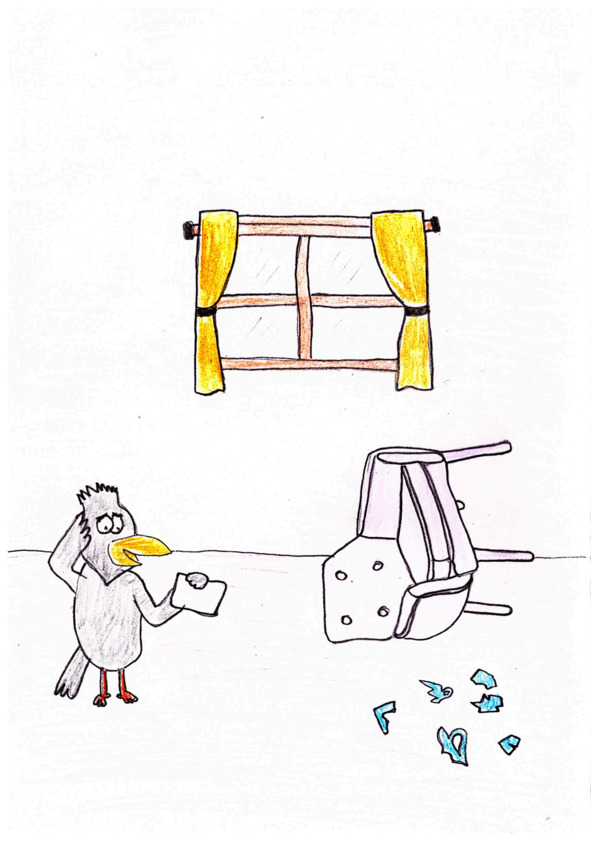 Дядюшка Грач и Еж пошли открывать. За порогом никого не оказалось. Вернувшись в комнату, они увидели открытое окно. Ежовые фантики, домино, газета «Лесные новости» и терракотовый кот пропали.