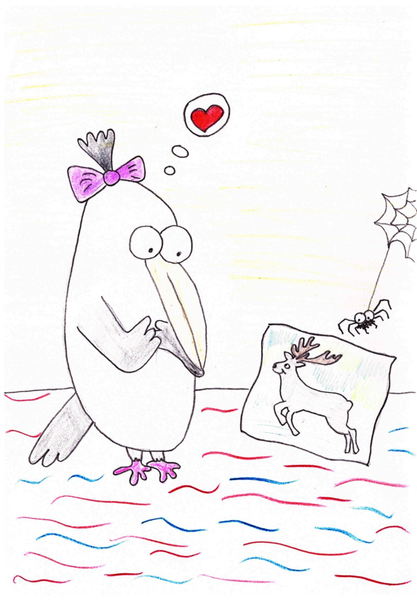 Ворона Ариша с трепетом аккуратно перебирала свое счастье. Не так давно она стала собирать обертки от конфет. Сначала ее привлек серебряный блеск фольги. Потом узорчатые рисунки на фантиках. Вся прелесть мира открылась ей, когда на дороге она наткнулась на конфету, завернутую в бумажку с изображением неизвестного животного с рогами на фоне снега и разноцветного неба.