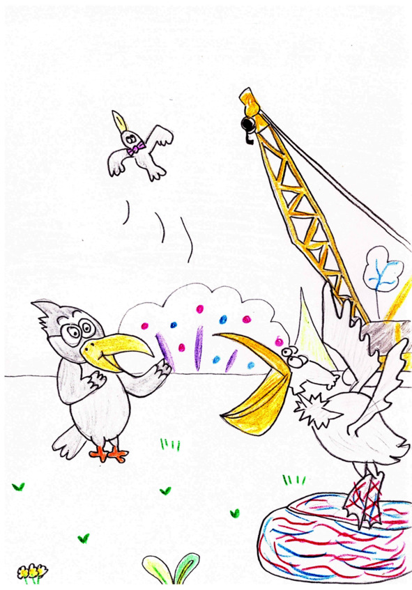 Пеликана не пришлось долго уговаривать. Ворон Рыбий Глаз обмотал его ноги проводами и указал на стрелу крана, куда нужно поднять и установить гнездо Ариши.
