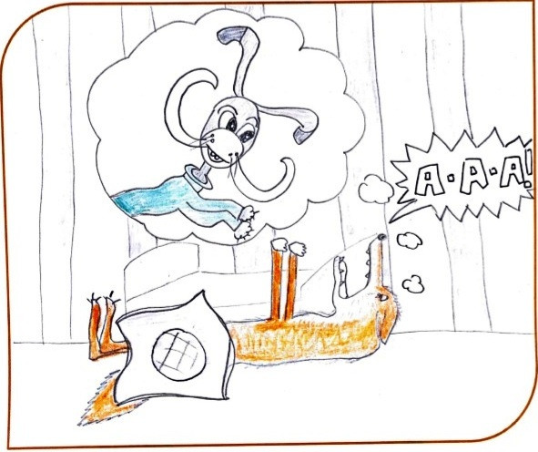 Ein düsterer, nebliger Morgen schauderte mit einem schrecklichen Grollen aus dem Haus mit dem orangefarbenen Dach. Der Fuchs, der aus dem Bett fiel, beobachtete den letzten Traum – seltsame Hasen (mit riesigen Krokodilzähnen und Mammutstoßzähnen) umgaben ihr Haus und zählten den Countdown: