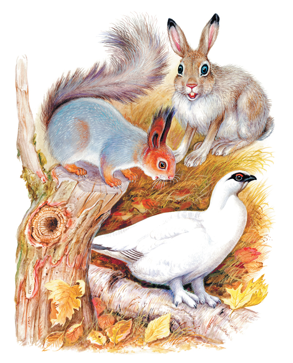 И рассказал ей про тетерева: как он живёт в лесу, как бормочет весной, как берёзовые почки клюёт, ягодки осенью в болотах собирает, зимой греется от ветра под снегом. Рассказал ей тоже про рябчика, показал ей, что серенький, с хохолком, и посвистел в дудочку по-рябчиному и ей дал посвистеть.