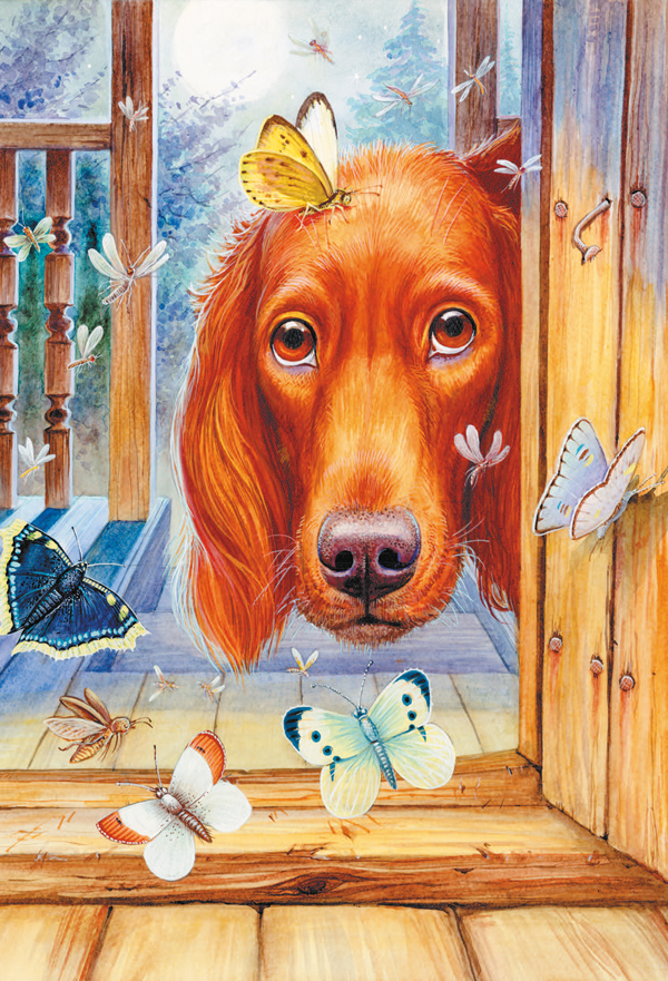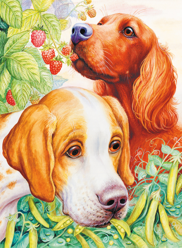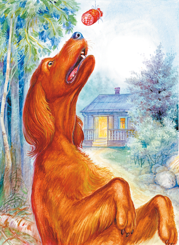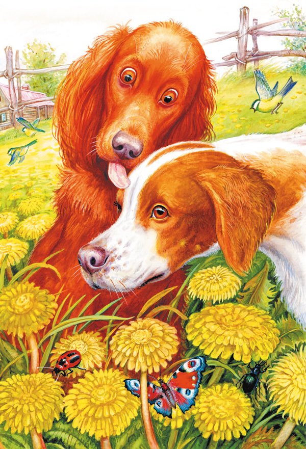 Лада, старый пойнтер десяти лет, – белая с жёлтыми пятнами. Травка – рыжая, лохматая, ирландский сеттер, и ей всего только десять месяцев. Лада – спокойная и умная. Травка – бешеная и не сразу меня понимает. Если я, выйдя из дому, крикну: «Травка!» – она на одно мгновение обалдеет. И в это время Лада успевает повернуть к ней голову и только не скажет словами: «Глупенькая, разве ты не слышишь, хозяин зовёт».
