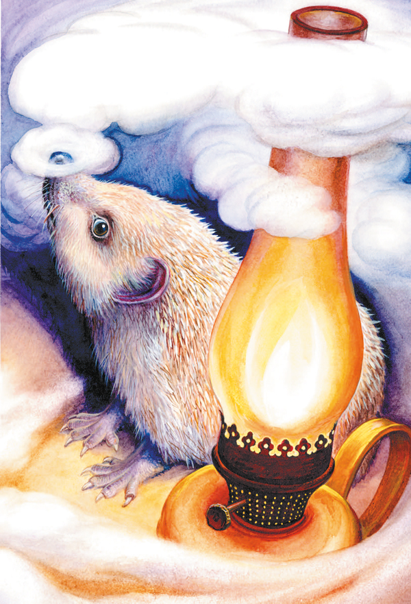 Когда стемнело, я зажёг лампу, и – здравствуйте! – ёжик выбежал из-под кровати. Он, конечно, подумал на лампу, что это луна взошла в лесу: при луне ежи любят бегать по лесным полянкам. И так он пустился бегать по комнате, представляя, что это лесная полянка.