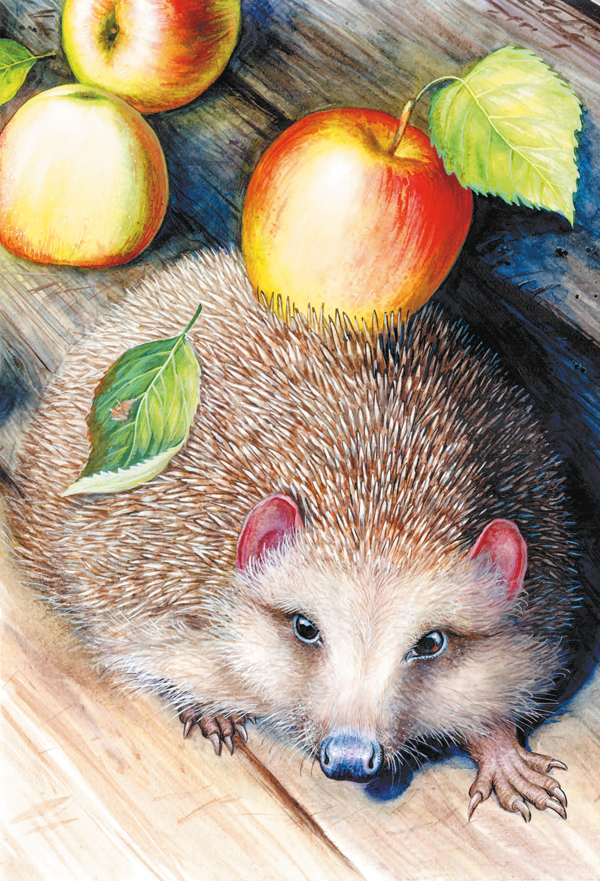 Зажигаю свечу – и что же вы думаете? Ёжик бежит по комнате, и на колючках у него яблоко. Прибежал в гнездо, сложил его там и за другим бежит в угол, а в углу стоял мешок с яблоками и завалился. Вот ёж подбежал, свернулся около яблок, дёрнулся и опять бежит – на колючках другое яблоко тащит в гнездо.