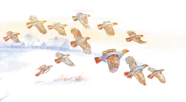 Серая куропатка у нас не любит зарываться в снегу и летает ночевать в деревню на гумна. Перебудет куропатка в деревне ночь с мужиками и утром летит кормиться на то же самое место. Куропатка, по моим приметам, или дикость свою потеряла, или же от природы неумная. Ястреб замечает её перелеты, и, бывает, она только вылетать собирается, а ястреб уже дожидается её на дереве.