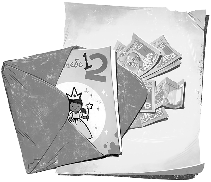 Я уже хотела схватить с подноса сладкую расгуллу, когда заметила что-то на полу – праздничное поздравление, наполовину выскользнувшее из конверта. Типичный папин юмор – глянцевая убийственно-розовая открытка для малышей. На открытке была изображена (угадайте, кто?), конечно, принцесса в короне, а над ней написано: «Дочка, тебе 2!» Но папа ручкой приписал перед двойкой единичку, и получилось 12. Ха-ха, как смешно. Тоже типичный папа. Но почему открытка валяется на полу? Я вытерла липкие пальцы о джинсы и подняла её.