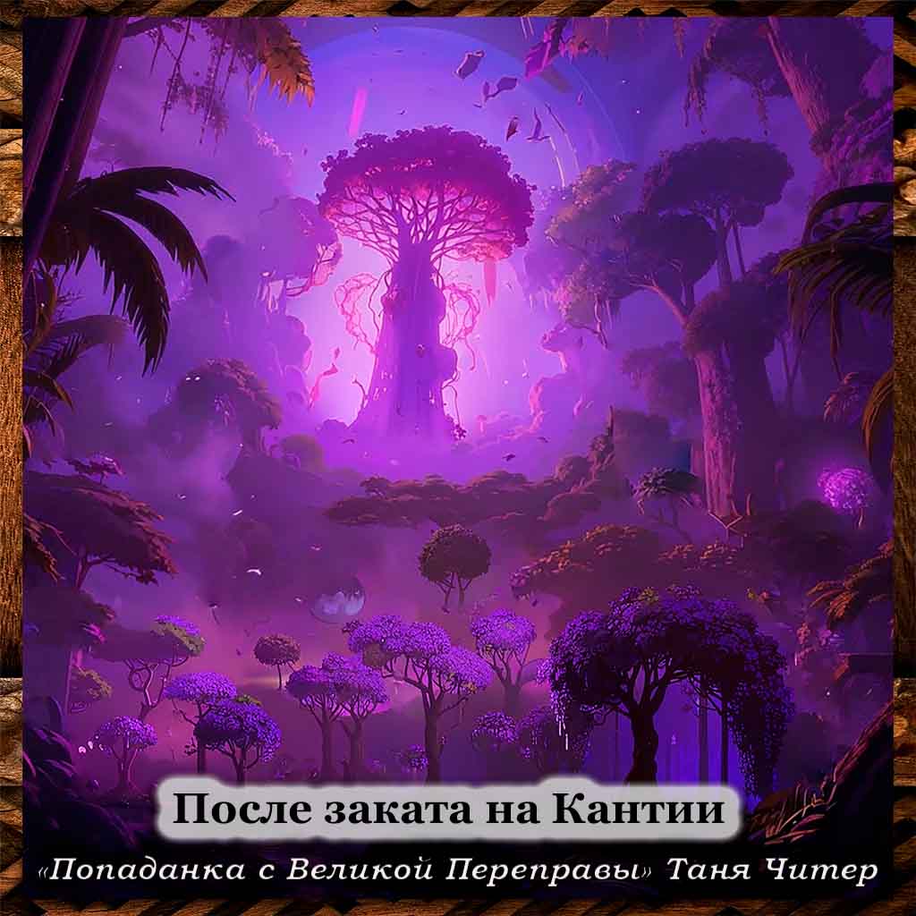 Тур – прекрасное дневное светило, диск которого выглядел на небе раза в два больше нашего Солнца, медленно опускался в воды Доргроча. Это зрелище яркостью красок затмевало северное сияние в его радужном варианте. Я сидела с открытым ртом, думая, что ничего фантастичнее не видела в своей жизни. Но когда звезда большим красным яблоком закатилась за горизонт, через короткое время землю под ногами и воды реки охватило нежное фиолетовое свечение, которое поднималось прямо из недр земли. И окружающее пространство приобрело волшебный вид. Деревья стояли словно диковинные бархатные инсталляции.