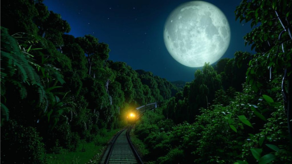 Высокая конструкция, огромная металлическая махина передвигалась в этой чаще, не обращая внимания на различные неровности дорог, сама прокладывая себе дорогу, но делая это почти что беззвучно, даже несмотря на то количество конструкций, которые были заключены в этот титанической массе. Машинист смотрел в эту даль и также был погружён в свои размышления, может быть даже отчасти наслаждаясь этим однообразием и образом ночной Фебы перед собой.