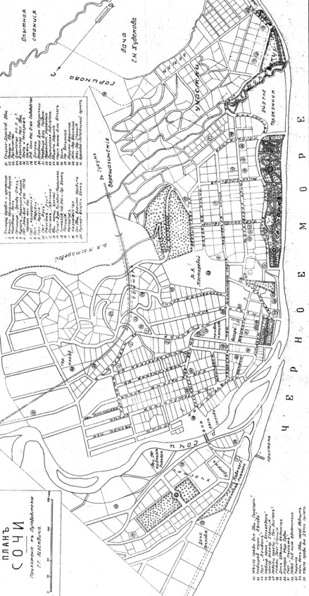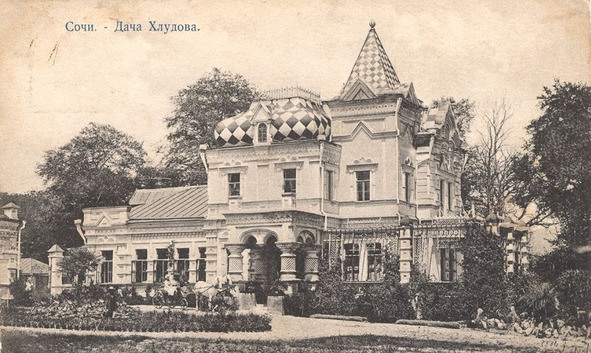 Остальная, большая, часть имения была поделена на небольшие участки для продажи через комиссионную контору А. Н. Виноградова, который являлся уполномоченным лицом при продаже казённых участков бывшего владения Хлудова.9 В рекламных целях Виноградов написал книгу о жемчужине Черноморского побережья – Сочи10, в которой оставил такое описание дачи Хлудова: