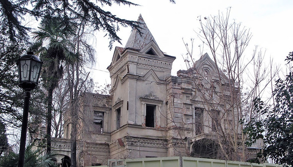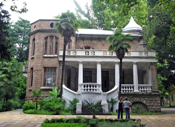 «Когда вы подъезжаете к Сочи на пароходе, гуляете по бульвару, по любой улице города, вы видите над ним довольно крутую зелёную гору. Но в самый момент взгляда на эту гору наш взгляд невольно переносится на её левую сторону, где и останавливается, любуясь обширным, чьим-то культурным владением. Владение расположено по склону к городу восходя от него террасами до вершины холма. По террасам вы отлично видите сначала полосу экзотических насаждений, затем отлично рассаженный плодовый сад, выше виноградники, а на самом верху – лесок. Общий фон зелени оживляется белыми постройками. Главный дом по самую крышу задекорирован тою же зеленью.