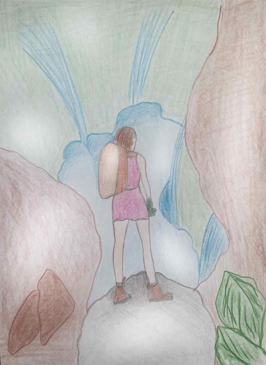 побежал в лес, это существо побежало за ней и пробегая мимо челнока, он задел его своим необъятным хвостом и от удара он отлетел в сторону ударившись о скалы. Было не ясно, что с ним, каковы повреждения, но уже из далека был заметен дым, который исходил из челнока, а это означало, что он повреждён и возвращаться на нём обратно было уже не возможным. Да и сигнал о помощи, Кира подать уже бы не смогла, так как связь с кораблём была утеряна. Убегая всё глубже в лес Кира понимала, что дороги обратно нет и ей придётся выживать в этом мире, где есть только хищник и жертва, одной. В этом огромных размером мире, у неё было явное преимущество, она была маленькой и могла спрятаться в любой норе или ущелье. Так она смогла ускользнуть от своего преследователя, спрятавшись в одном из таких мест. После чего, она ещё долго шла, прежде чем нашла подходящее место для отдыха, возле водопада с питьевой водой. Там она остановилось на ночлег, так как уже начинало темнеть. В углу водопада была небольшая пещера, которая оказалась безопасной, так прошёл первый день Киры в мире, который она так стремилась познать, она вела дневник и поэтому старалась всё записывать, поэтому перед сном, она сначала записала голосом всё, что увидела, а затем легла спать, ведь это был самый экстремальный и опасный день в её жизни. Утром она набрала чистой воды из родника и отправилась дальше.