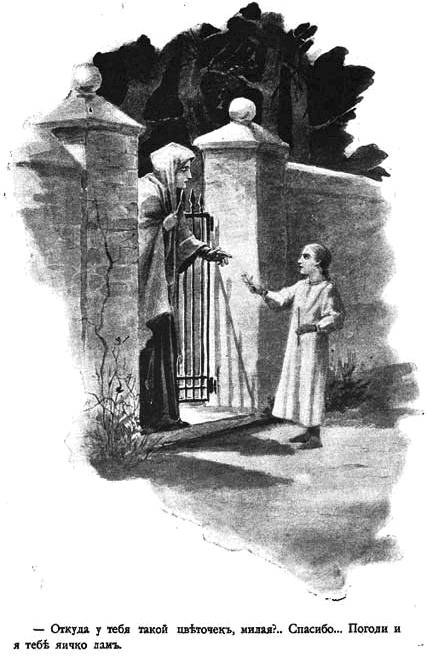 – Ну, как можно трогать, покойничков обижать!.. С могил никому нельзя цветов обрывать, – сказала мать и прибавила. – Беги вперёд, Митюша! Скажи бабке, чтобы на стол сбирала: как приду, так разговляться станем.