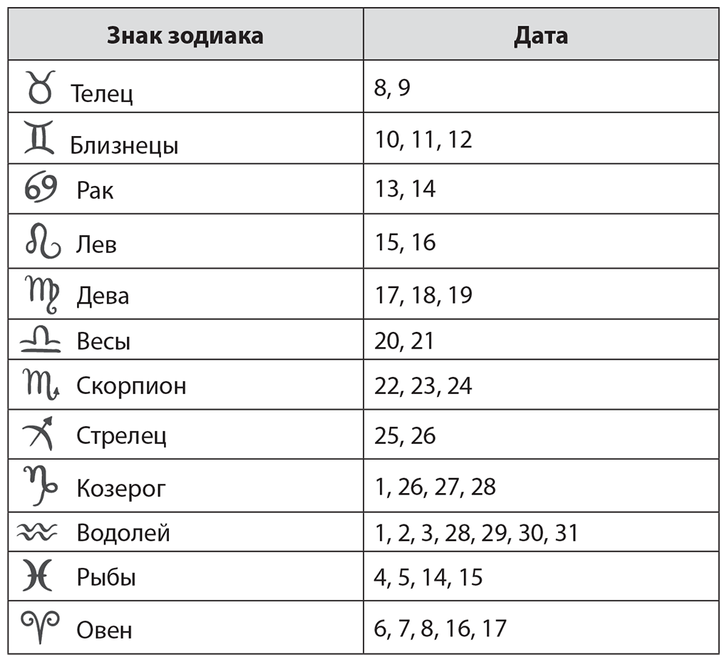 Прохождение Луны через знаки зодиака