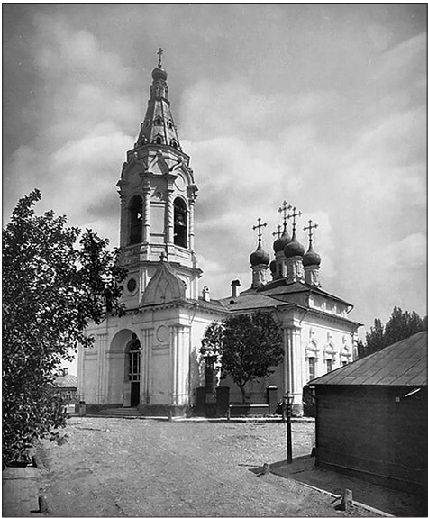 Возможно, тогда церковь была деревянной, ибо в 1651 г. было повеление возвести каменное ее здание, но было ли оно исполнено или нет, неизвестно. Однако известно, что в 1692 г. каменную церковь, выстроенную иждивением царицы Натальи Кирилловны и царевича Алексея Петровича, освятил патриарх Адриан.